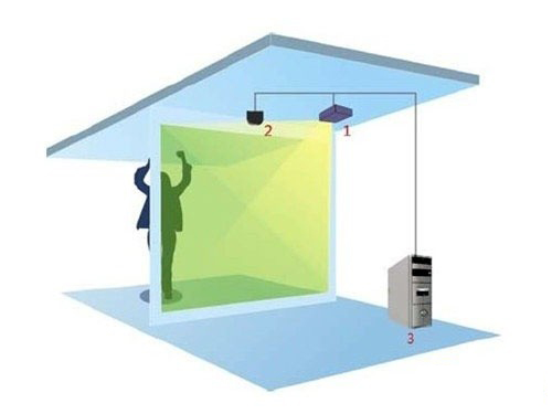 互動投影系統(tǒng)的運作原理首先是通過捕捉設(shè)備(感應(yīng)器)對目標(biāo)影像(如參與者)進行捕捉拍攝,然后由影像分析系統(tǒng)分析,從而產(chǎn)生被捕捉物體的動作,該動作數(shù)據(jù)結(jié)合實時影像互動 ……