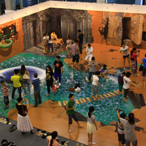 地面互動投影系統(tǒng)采用懸掛在頂部的投影設(shè)備把影像效果投射到地面,當(dāng)參訪者走至投影區(qū)域時,通過系統(tǒng)識別,參訪者可以直接使用雙腳或動作與投影幕上的虛擬場景進行交互,各種 ……